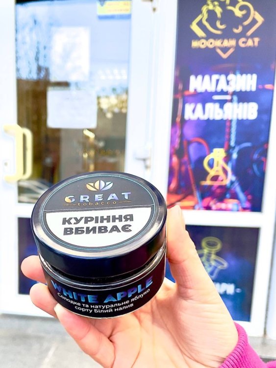 Сегодня взял себе баночку табак грейт Білий налив, вкус называется. Был просто в восторге. Вкусопередача отличная, курил 50 минут и вкус был. Такого вкуса яблока я не курил еще. Именно как яблочное пюре, а не как многие делают яблочная конфета. Во общим смело могу рекомендовать вам этот табак на пробу.